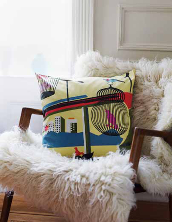 I love going to Brett’s blog and being inspired by the graphic use of color in all of her projects. Love that squishy pink yarn!