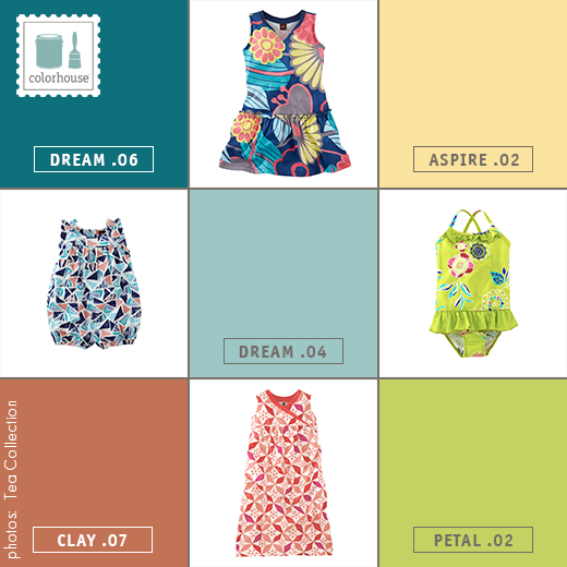 Tea Collection brings world-wide cultures and modern design to children’s fashion with their globally-inspired children’s clothes. For this year’s summer collection, their designers traveled to Morocco - a land filled with vibrant color, bold pattern, exotic culture, and INSPIRATION. We have paired some of their bright Moroccan-infused prints with Colorhouse hues to create a vibrant yet earthy palette.