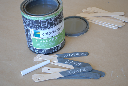The season of entertaining is upon us! We are taking the bounty of our gardens and local farms and crafting beautiful meals for family and friends. Add a special touch to your table with personalized place cards using Colorhouse Chalkboard paint. In this MAKE THIS post, we’ll show you how!